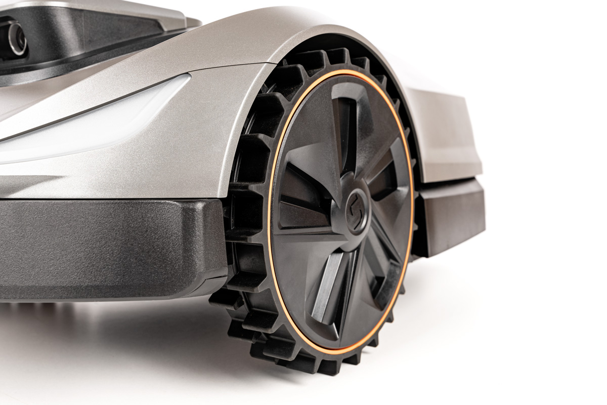 - Aplikacja mobilna + klawiatura – intuicyjne sterowanie, konfiguracja harmonogramu i stref koszenia.